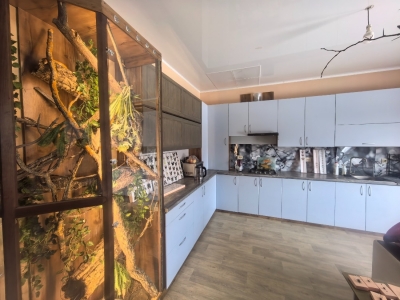 В доме проведена городская вода, а планировка выполнена в современном стиле. В нём есть вся необходимая мебель и техника. Площадь кухни и гостиной составляет 33 квадратных метра. Высота потолков — три метра, что обеспечивает простор и уют....